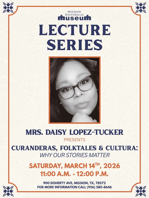 This annual program takes place every 2nd Saturday of the month starting in October and ending in March. The lecture series features a local speaker, author, or professor with knowledge of topics of local history or culture. The program is free and open to the public. If you'd like to participate as a speaker please email clunderwood@missiontexas.us.